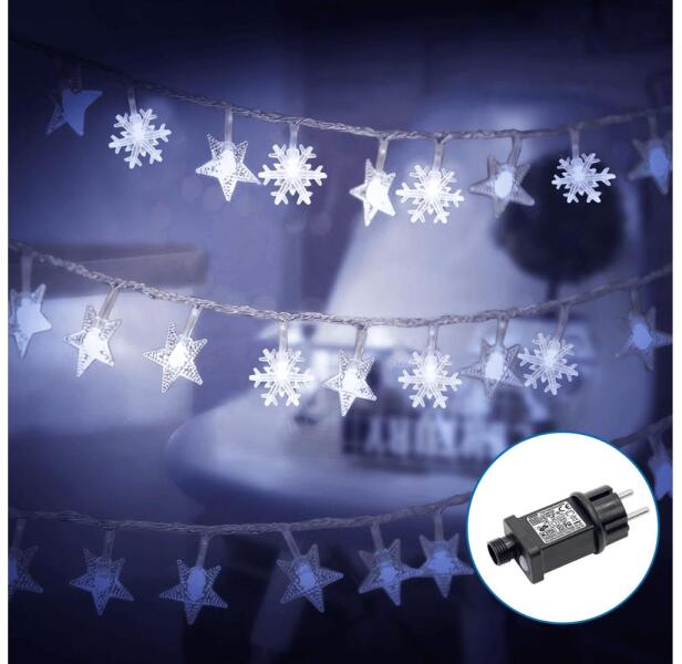 Karácsonyi fényfüzér, amely tökéletesen alkalmas kertdíszítésre. Alacsony fényerőssége miatt dekoratív világításként használható. Táplálás tápkábelen keresztül (a transzformátor a csomag része). Csatlakozó típusa: E – további információk találhatók itt itt. 8 világítási funkció. A funkciók közötti váltást a csatlakozón található kapcsoló teszi lehetővé. Memória funkció és időzítő. Fény színe: hideg fehér. LED-ek száma: 50. A megvilágított kábelhossz: 5 m. Tápkábel hossza: 3 m. Kábel színe: átlátszó.