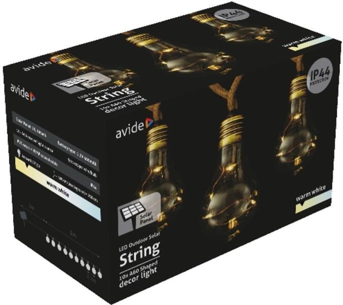Avide Kültéri Szolár Füzér 5M, Kötél Kábel 10 Globe, Ww, Ip44 (AOSS5R-10C50ML-WW)