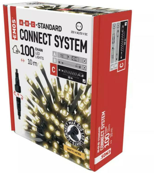 EMOS Standard LED sorolható karácsonyi füzér, 10 m, kültéri és beltéri, meleg fehér D1AW03 (D1AW03)