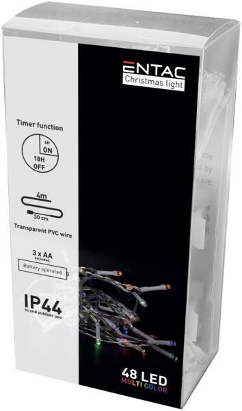 AVIDE Entac Karácsonyi IP44 Füzér 48 LED Időzítővel Színes 4m (3AA) (ECL-48MC-T)