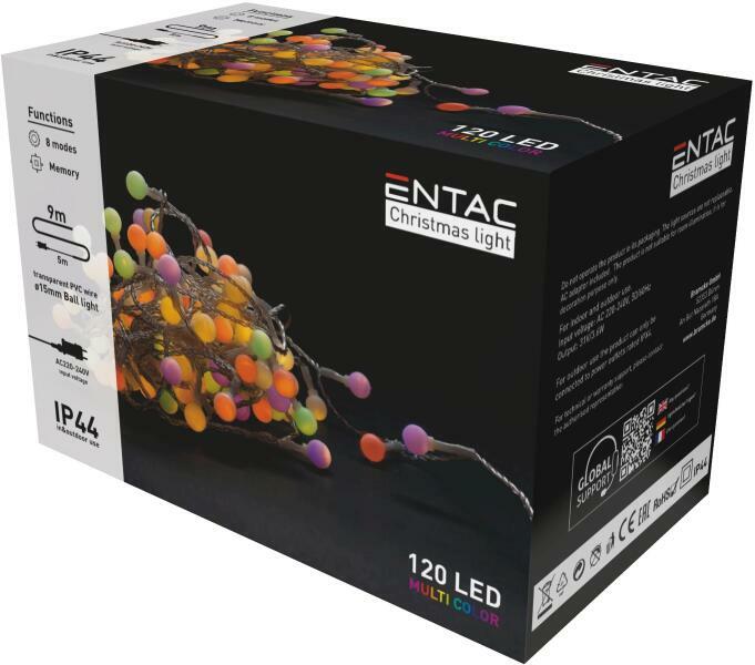 Entac Karácsonyi IP44 fényfüzér 15mm Balls 120 LED, színes, 9m (ECL-PPB-120MC) (ECL-PPB-120MC)