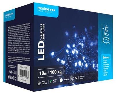 Karácsonyi 100 LED 10 méteres hidegfehér Füzér Plastic - 8 program Adapteres