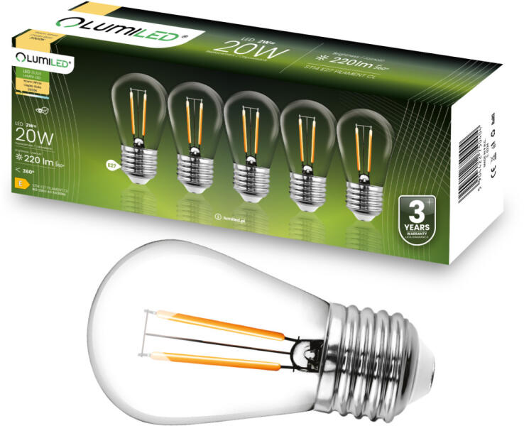 Lumileds 5 CSOMAGOS LED izzó E27 ST14 2W = 20W 3000K meleg 220lm izzószál LUMILED GIRLANDhoz (LUMLEDL0013)