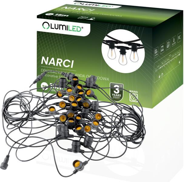 Lumileds Kerti kültéri girland fénylánc 15m 30x E27 NARCI LUMILED