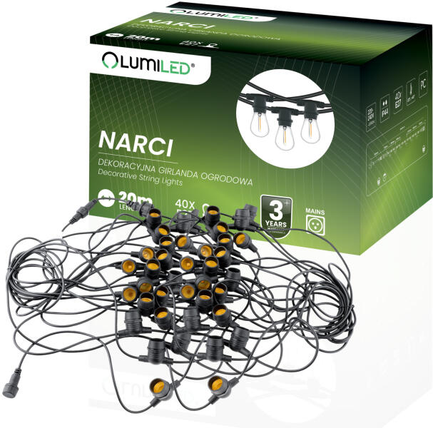 Lumileds Kültéri kerti girland fényfüzér 20m 40xE27 NARCI LUMILED