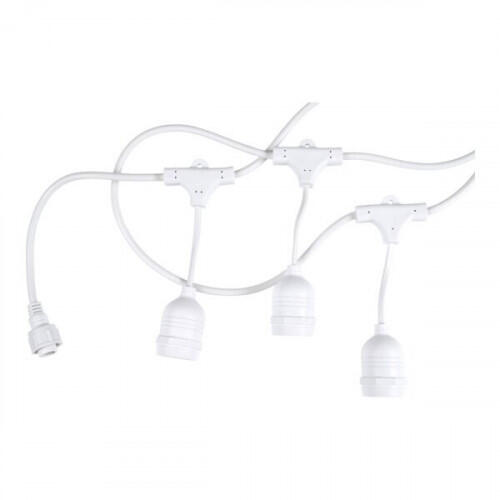 A kültéri fényfüzérek a nyári esték kedvelt dekorációs eleme, amelyeket használhatunk a teraszon, a kertben. IP65-es védettségének köszönhetően kültéren is alkalmazható A fényfüzér világítását 10 darab E27-es LED lámpa biztosítja ( a fényforrás nem tartozék!) 6 méter hosszú és a kábel színe fekete.