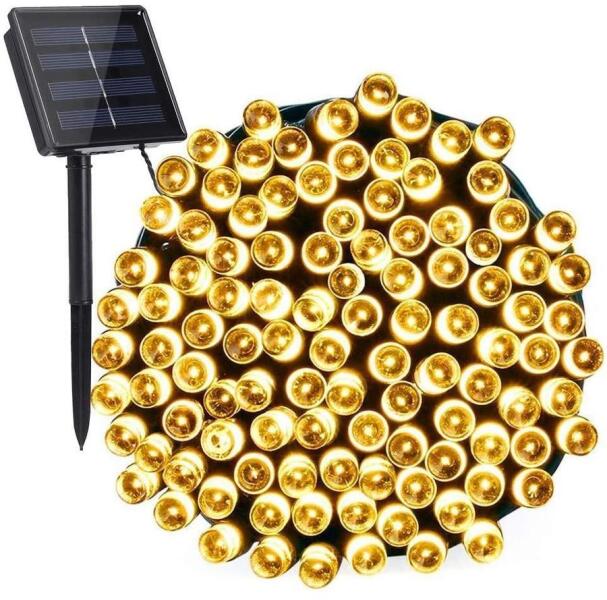 100 LED-es napelemes kerti fényfüzér, meleg fehér