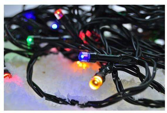 Kültéri LED karácsonyi fényfüzér. Tápegység 230V AC. 100 LED dióda. A világító kábel hossza 10 m. A tápkábel hossza 3 m. 8 világítási mód (villogás, fényátmenet, fényerő csökkentés... )Időzítő 6h/18h - 6 óra után automatikusan kikapcsol, majd 18 óra múlva újra bekapcsol.