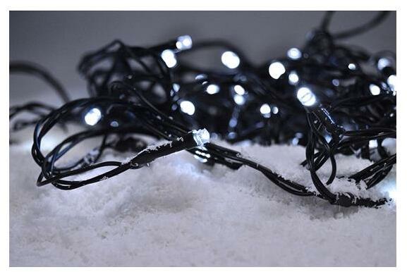 LED karácsonyi fényfüzér kültéri használatra. Táplálás 230V AC. 100 LED dióda. A világító kábel hossza 10 m. A tápkábel hossza 3 m. 8 világítási mód (villogás, fényátmenet, fényerő csökkentés... )Időzítő 6h/18h - 6 óra után automatikusan kikapcsol, majd 18 óra múlva újra bekapcsol.