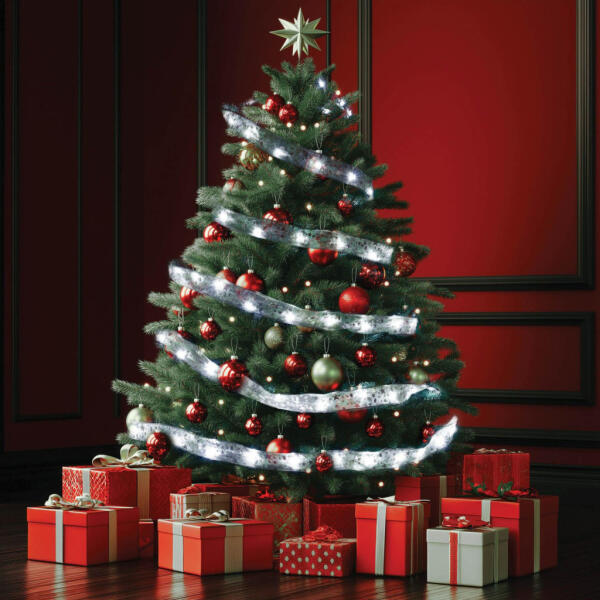 Somogyi Elektronic RLS10WH LED-es szalag mintákkal, ezüst színű szalag, 8 funkció, 100db hidegfehér LED, 10m hosszú, 5cm széles, elemes tápellátás, beltéri kivitel - avplanet