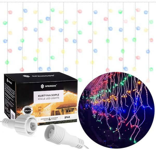SPRINGOS Fényfüggöny 500 led füzér, 20m, multikolor (CL0503)