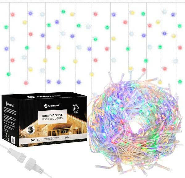 SPRINGOS Fényfüggöny 500 ledes füzér, 20m, multikolor (CL0519)