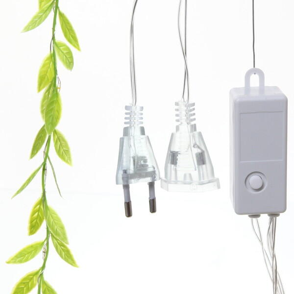 Karácsonyi Fényfüggöny Levelekkel 2x2m Hideg Fehér: Gyönyörű, futónövényt imitáló dekorációs fényfüggöny, ami alkalmas karácsonyi összejövetelekre, vagy bármilyen más alkalomra. Toldható kialakításának köszönhetően bármennyi fényfüzért összecsatlakoztathatunk, így akár egy igazán hosszú, többméteres szakaszt is kivilágíthatunk vele. Rendkívül dekoratív és ízléses, felnőttek és gyermekek egyaránt oda lesznek érte. Nem csak télen használható. Bár karácsonykor van a fő szezonja, nyáron is remekül mutat akár esküvői dekorációként vagy bármilyen más eseményen. Műanyag levelei élethűek és valódi növény benyomását keltik, ami az apró LED-ekkel kiegészítve fantasztikus atmoszférát teremt a helyiségben ahol elhelyezik. Elragadó hideg fehér fénye a 400 db LED-nek köszönhető, melyek egy 2 x 2 m-es füzérben helyezkednek el. Tulajdonságok: Fény: Hideg fehér Méret: hossz: 2m + 1,5 m vezeték magasság: 2 m Feszültés: 220 V LED-ek száma: 400 db 8 választhaó világításmód Toldható
