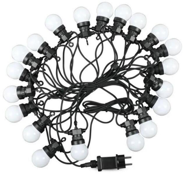 V-TAC Party LED fényfüzér, kültéri - opál gömb izzókkal (20 db izzó, 10 méter, 10 Watt) meleg fehér, sorolható ( 217439)
